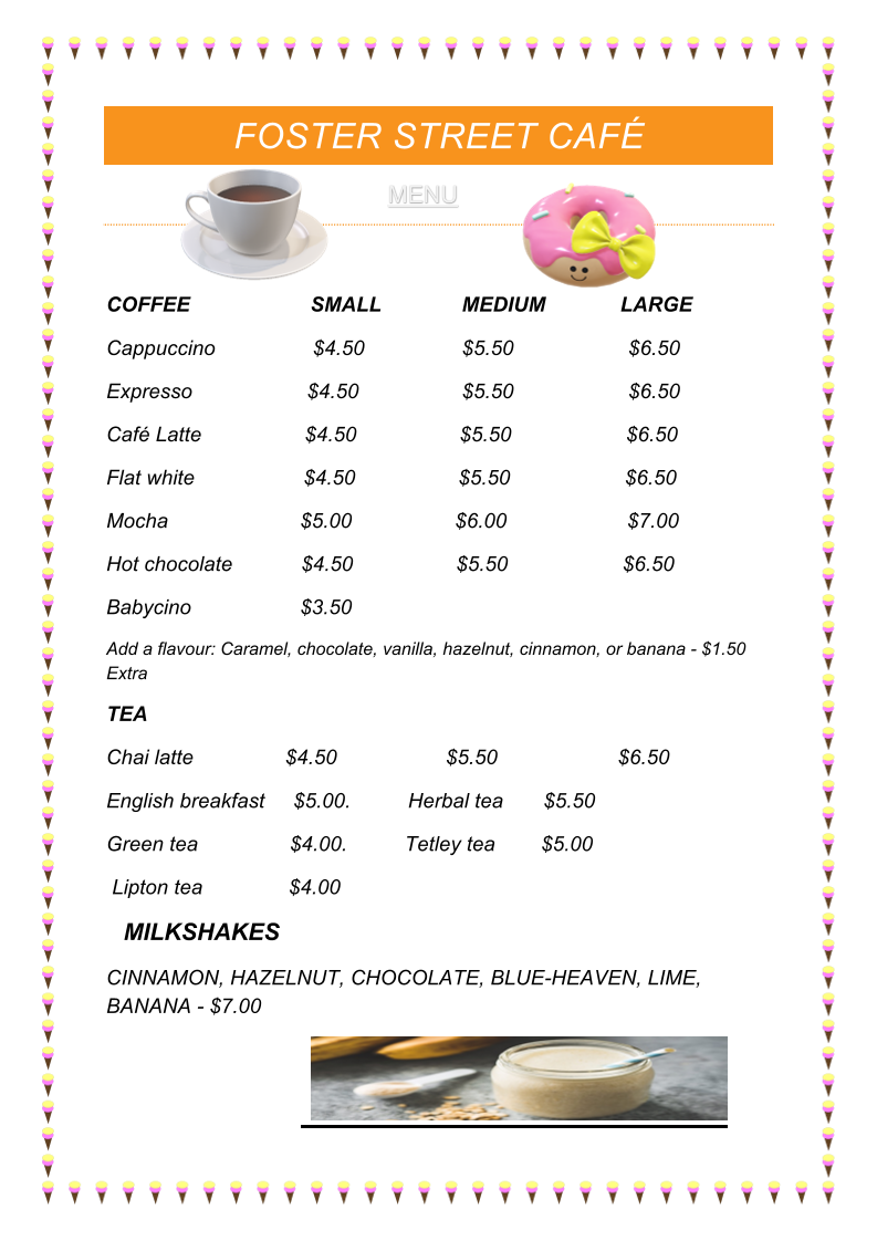 Foster St Cafe Menu